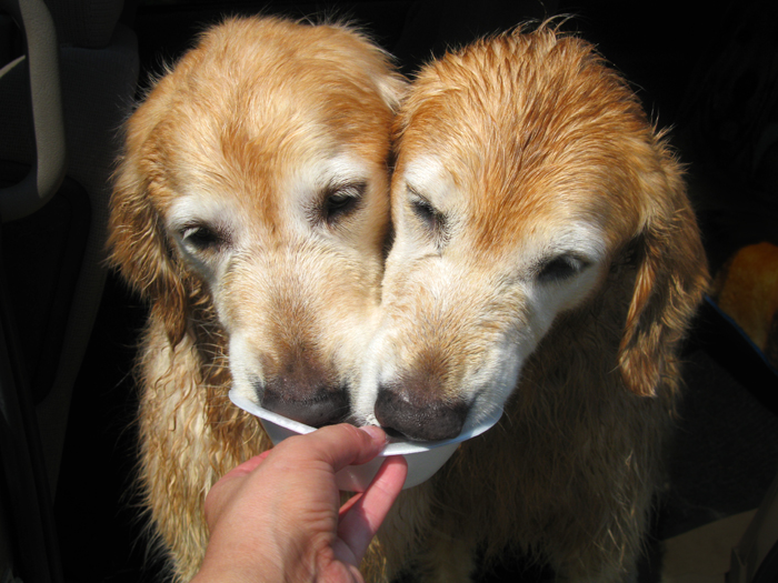 After a swim in the ocean, my puppers got to share a special treat of vanilla ice cream.